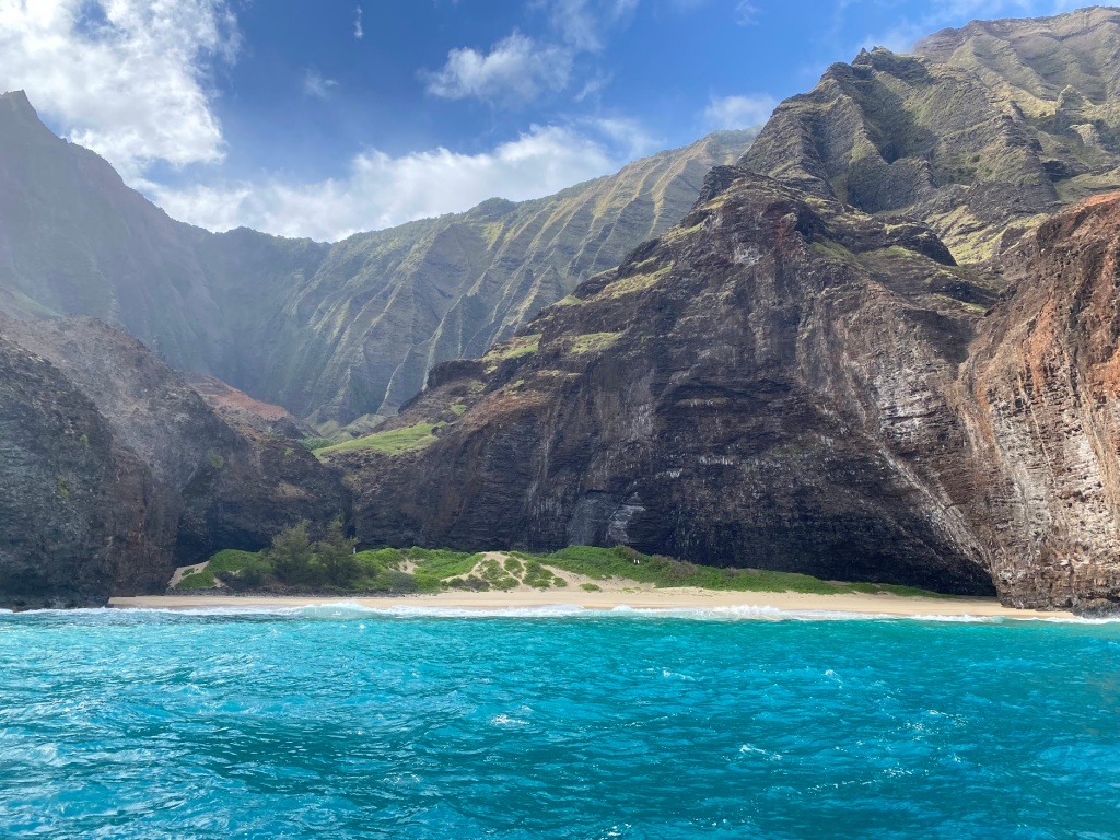 you could see a green tree covered hill, sitting beneath a sky as blue as Paris Hilton’s make-up. The